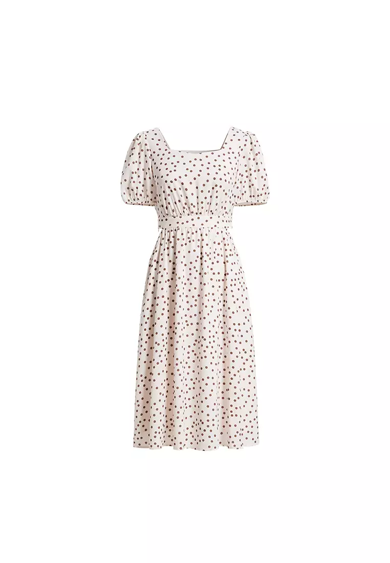 Solid Polka Dot Summer Midi Dress with Back Waist Tie