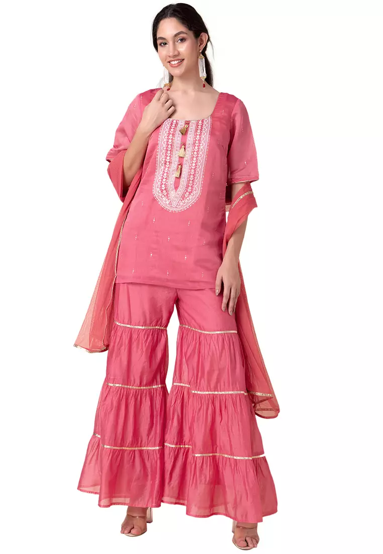 IndyaPeach Sharara With Short Embroidered Kurta And Dupatta (Set of 3)6511.002278.85