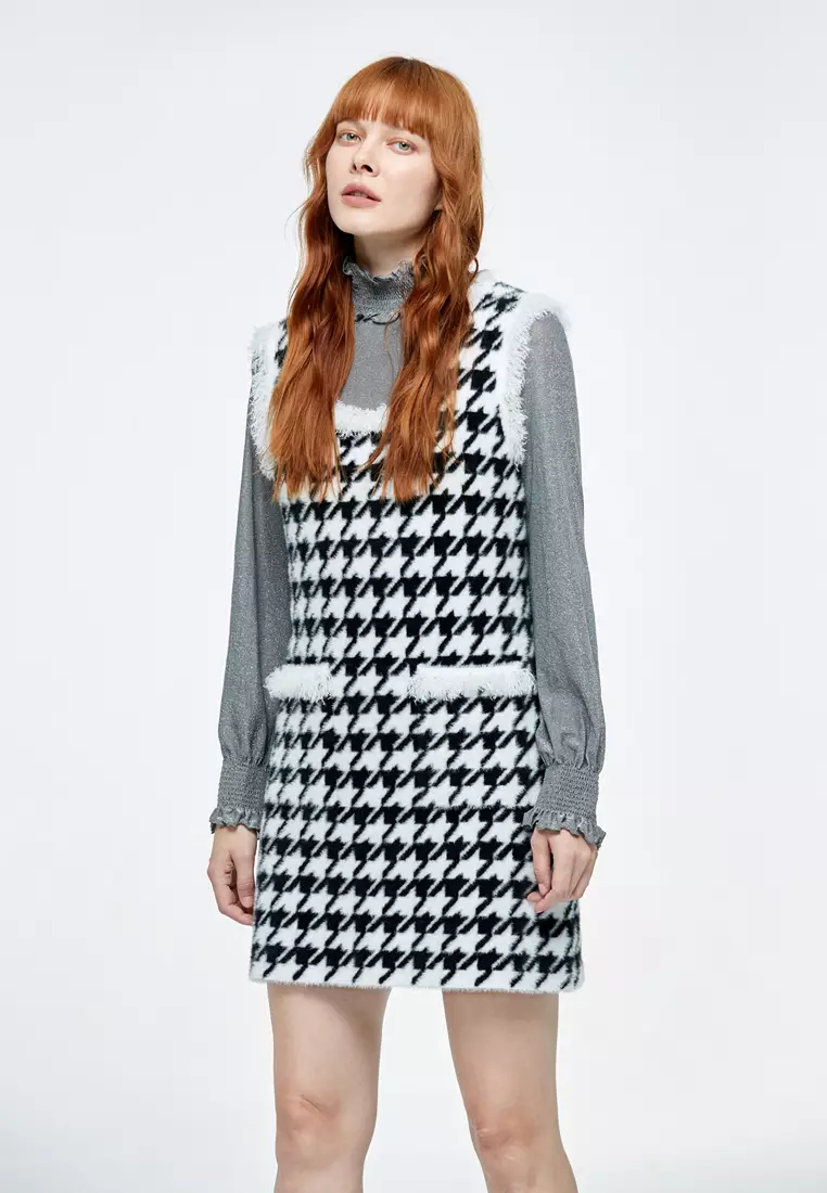 Houndstooth Pattern Sleeveless Dress