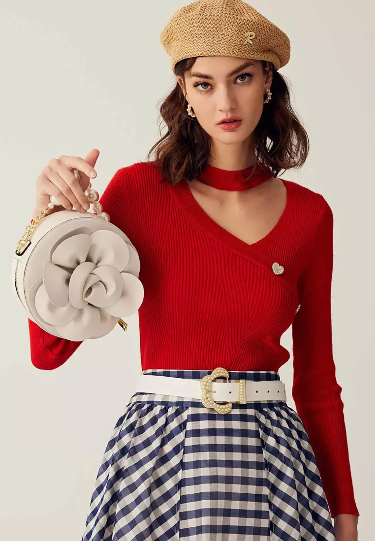 Long Sleeve Hollow Neckline Knit Top