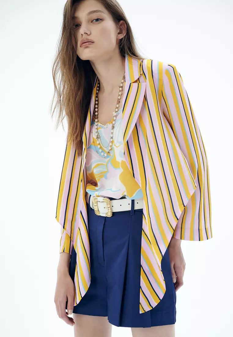 iROOSummer Stripe Print Front Tie Knot Crop Outerwear5844.00
