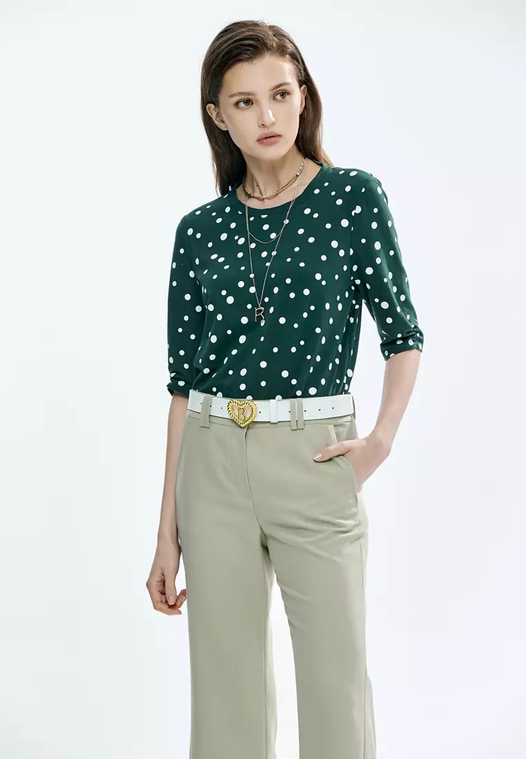 White Dotted Print Green Top
