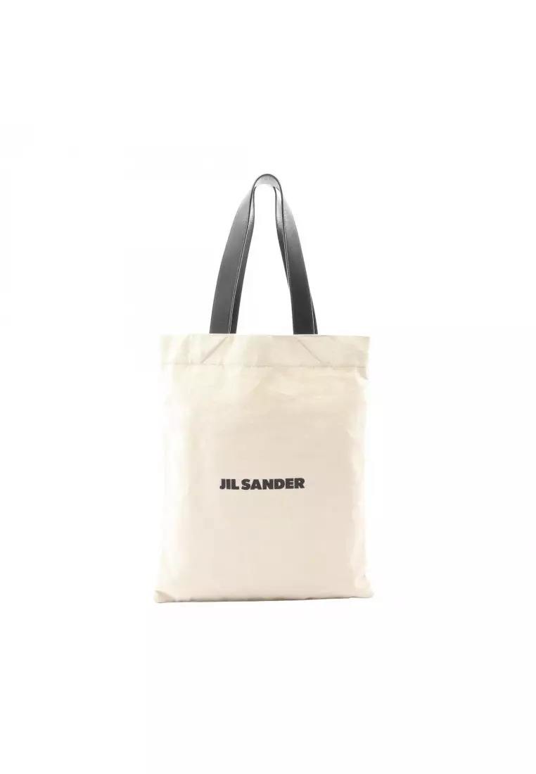 Pre-Loved Jil Sander Shoulder bag tote bag logo print canvas leather light beige black