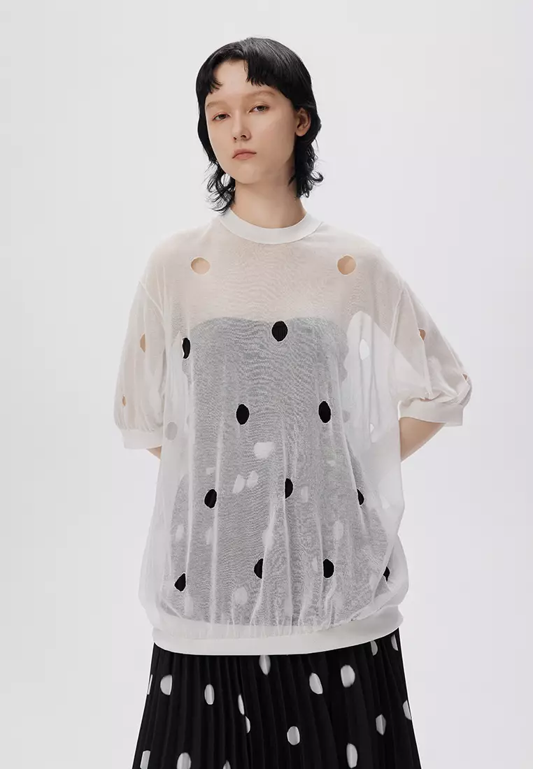 JNBY Women's Lace-Trimmed Short-Sleeved Knit Top