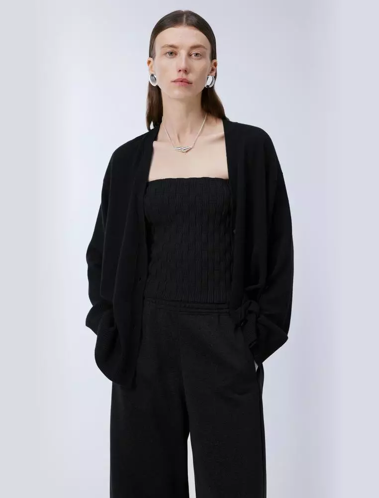 70% Wool, 30% Cashmere (except for hem and cuff stabilizing yarn)