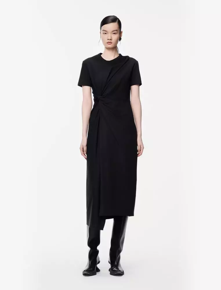 Pinch Pleat Long Short Sleeve Dress