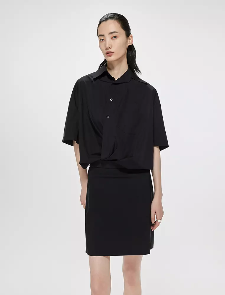 Poplin X-Line Oversized Elegant Short Sleeve Dress