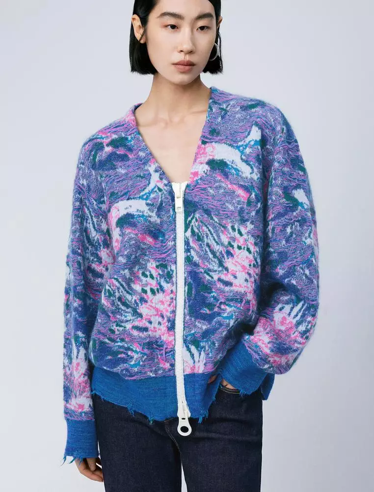 Yarn ① Mohair 50% Nylon 35% Sheep Wool 15%, ② Nylon 52% Acrylic 25% Sheep Wool 12% Mohair 11%, ③ Polyester 100% (Except ribbing)