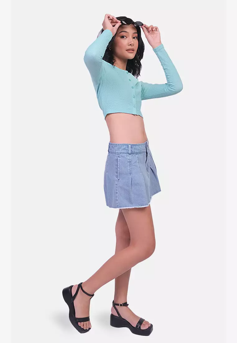 Long Sleeves Button Down Knit Crop Top
