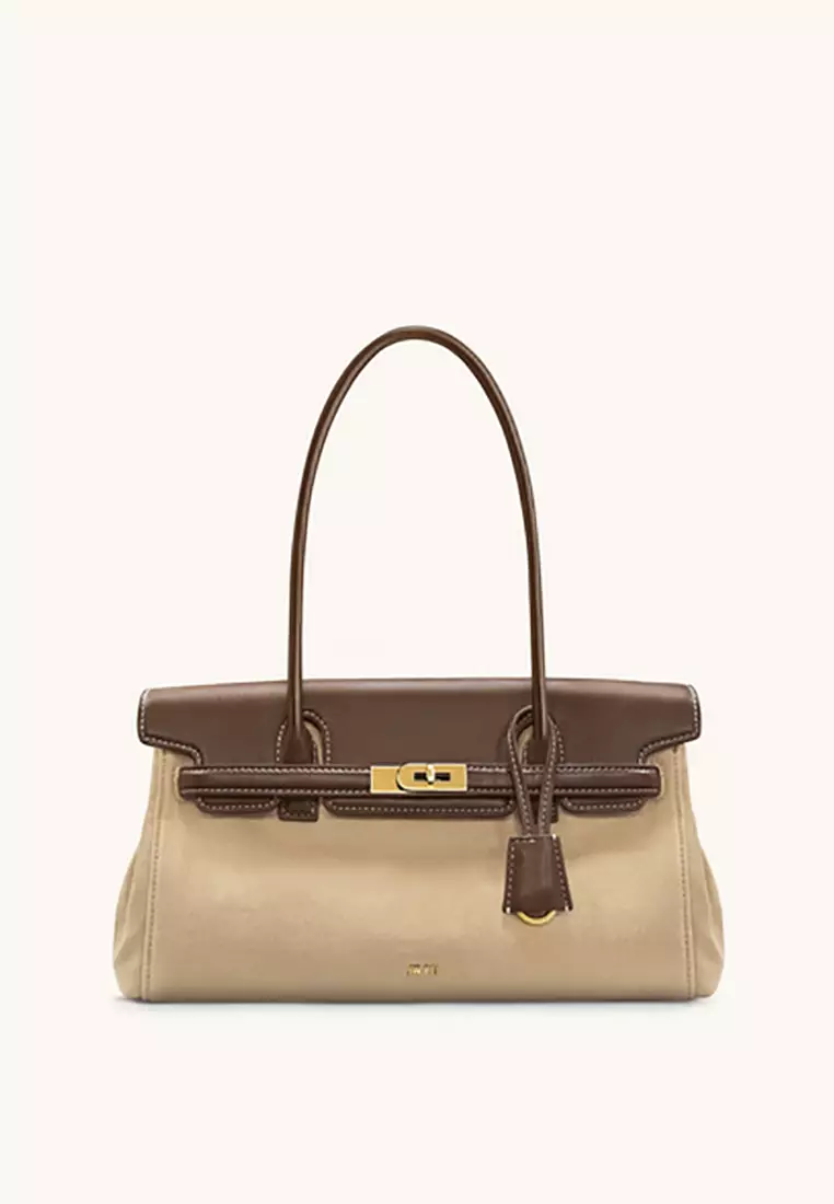 Yara Faux Suede Shoulder Bag - Dark Brown