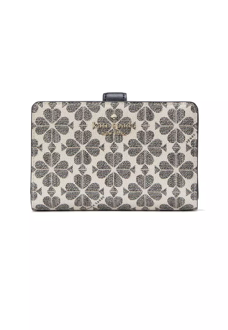 Spade Flower PVC Medium Compact Bifold Wallet Black Multi KG488
