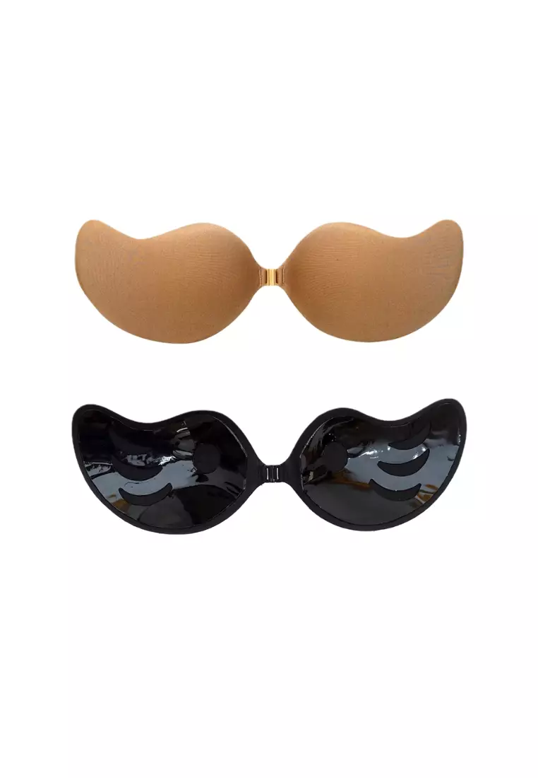 2 Pack Emilia Wing Push Up Nubra in Nude and Black Seamless Invisible Reusable Adhesive Stick on Wedding Bra 隐形聚拢胸
