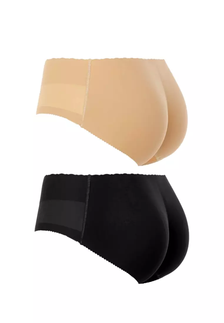 2 Pack Kelsie Butt Lifter Low Waist Panties Seamless Padded Underwear Hip Pads Enhancer Panty in Nude and Black