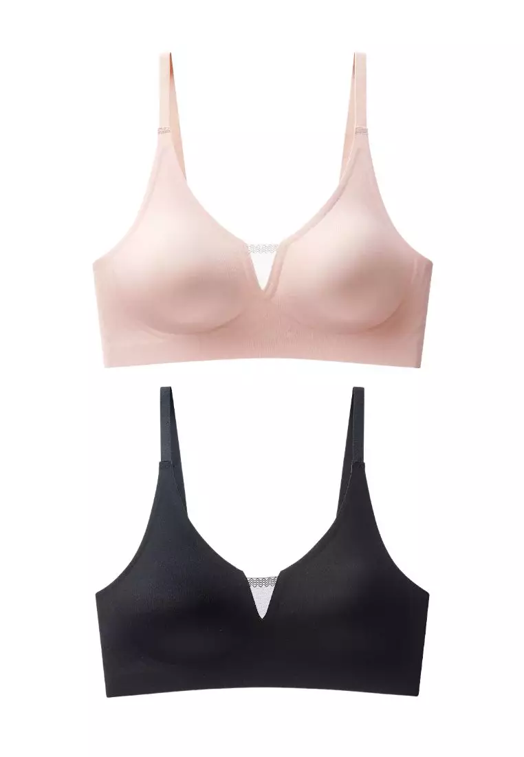 2 Pack Premium Angela Seamless Wireless Paded Push Up Bra in Nude and Black
