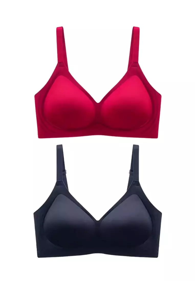 2 Pack Premium Blakely Seamless Wireless Padded Push Up Bra in Wine and Black