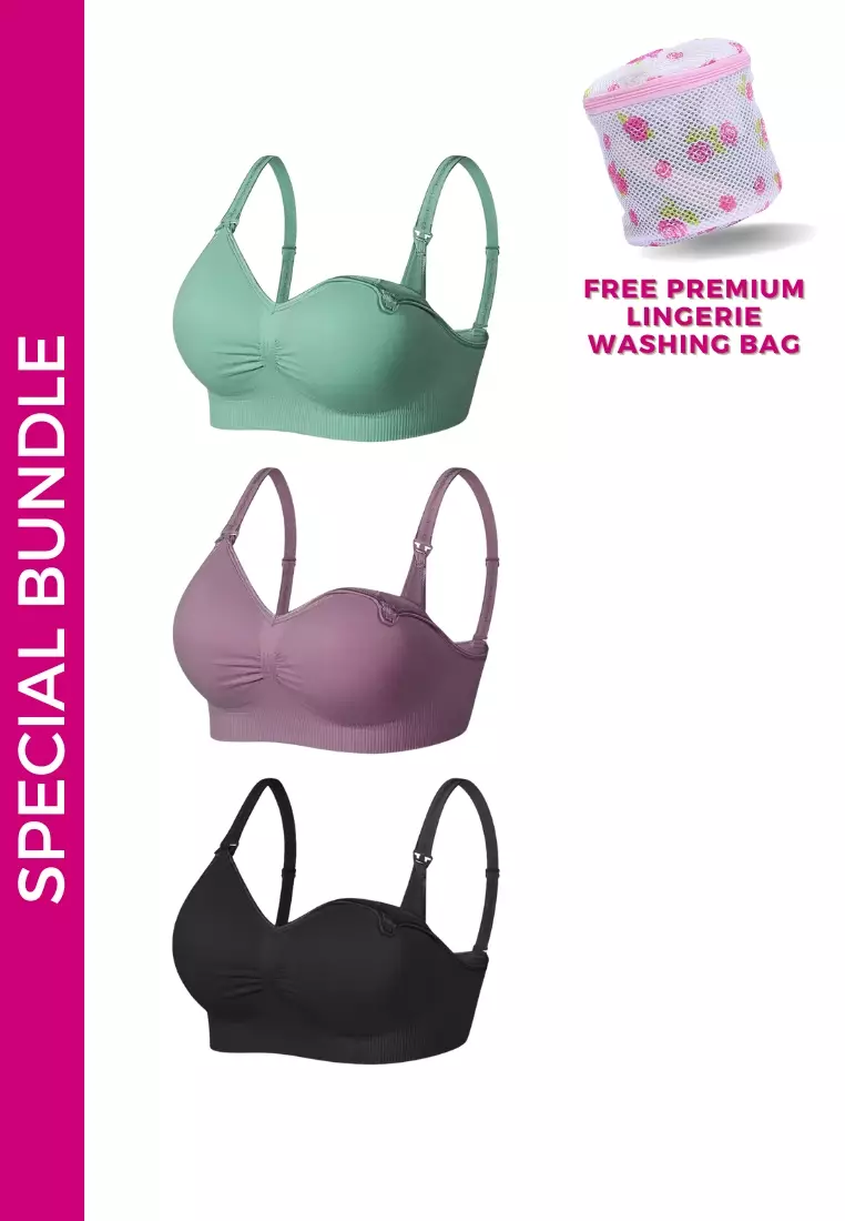 3 Pack Grace Nursing Push Up Maternity Bra in Green, Purple and Black