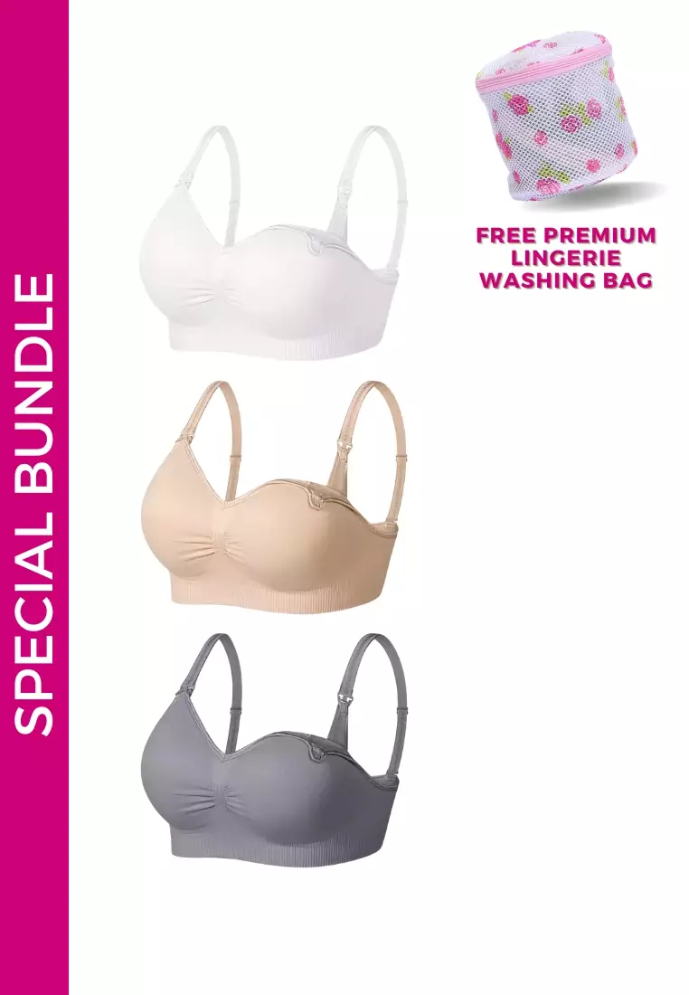 3 Pack Grace Nursing Push Up Maternity Bra in White, Nude and Grey