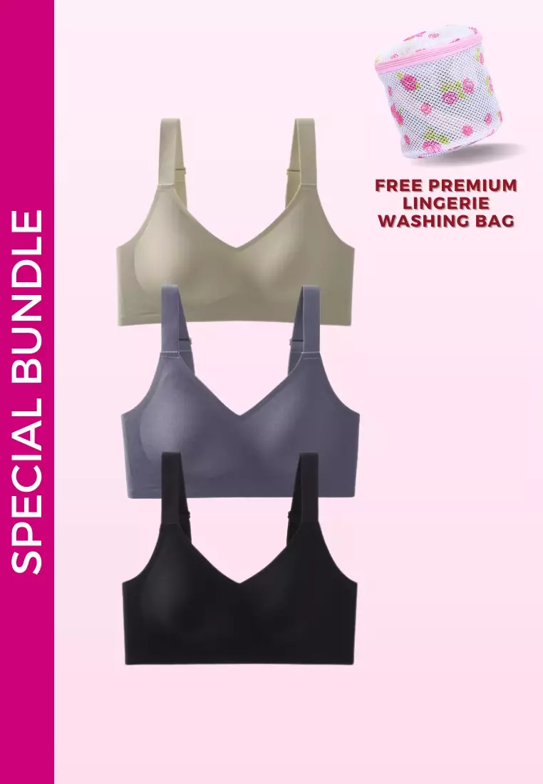 Kiss & Tell3 Pack Premium Melissa Seamless Wireless Padded Support Bra in Green, Blue and Black8700.007920.00