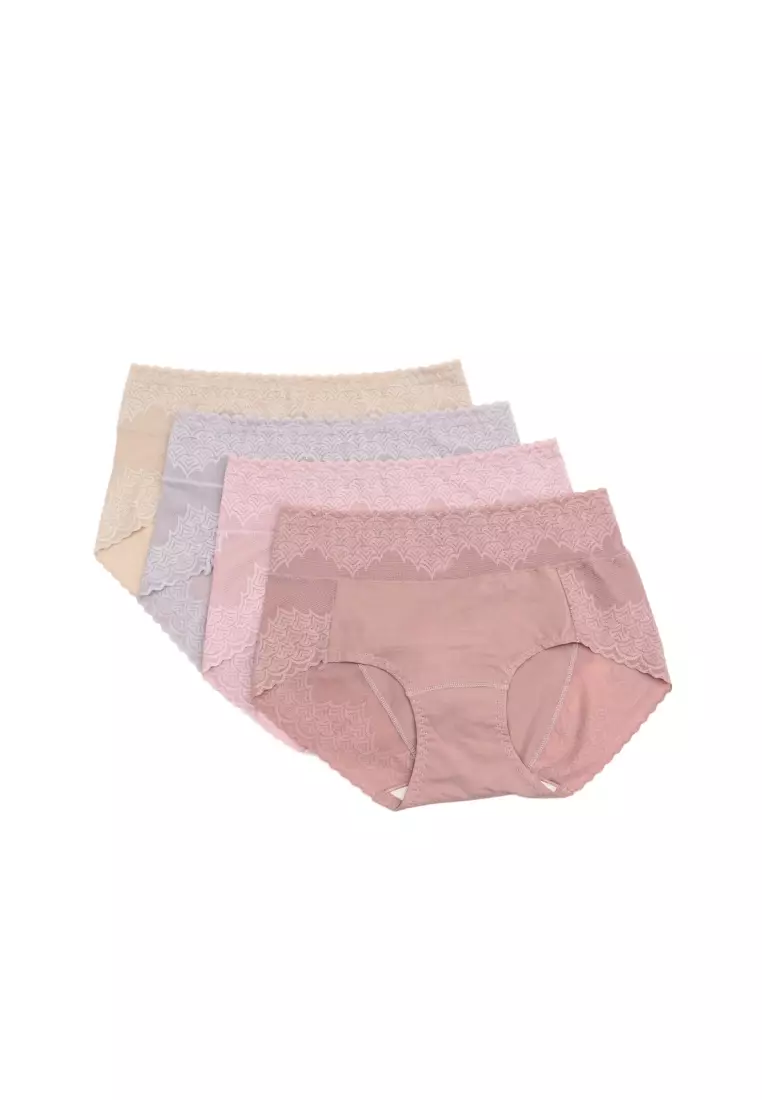 4 Pack Kamila High Waisted Cotton with Lace Panties Bundle A