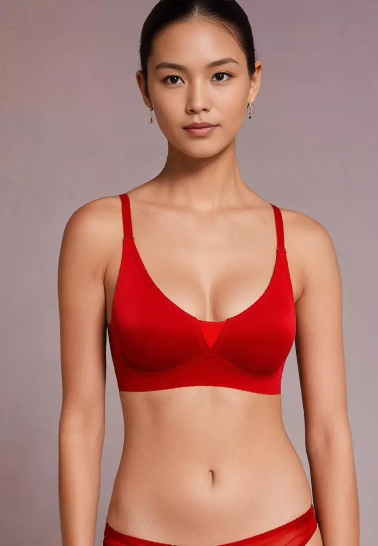Premium Angela Seamless Wireless Paded Push Up Bra in Red