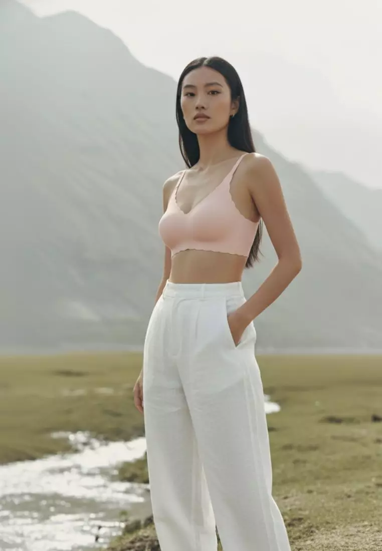 Premium Martha Scallop Seamless Wireless Push Up Bra in Nude