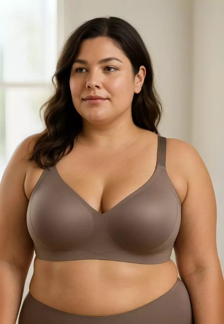 Premium Mirabel Plus Size Seamless Wireless Support Bra in Brown