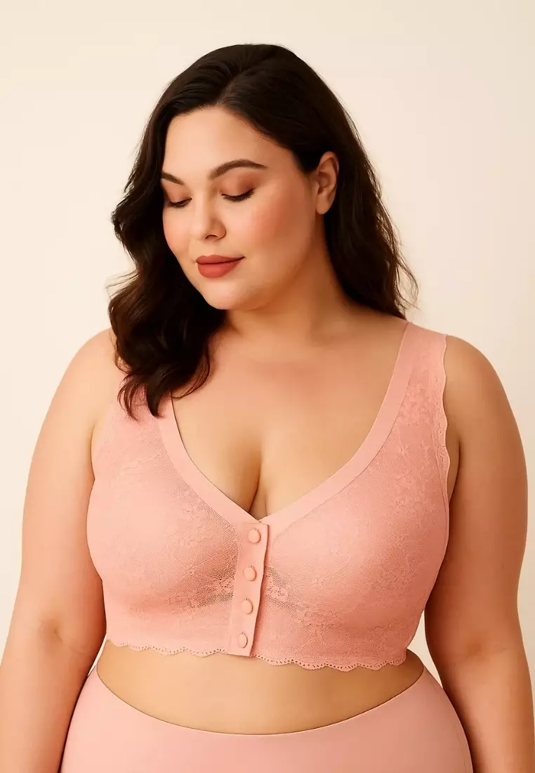 Premium Rylee Lace Plus Size Seamless Wireless Paded Push Up Bra in Pink