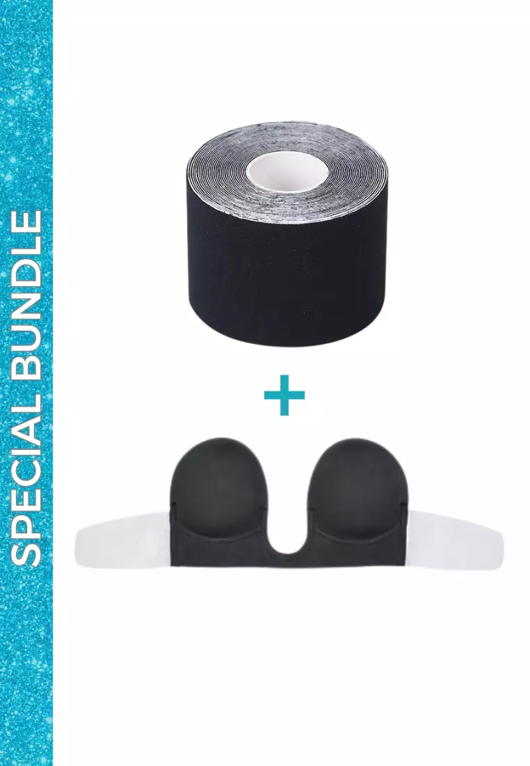 Special Bundle Plunging Seamless Push Up Nubra and Body Tape Invisible Breast Lifting in Black