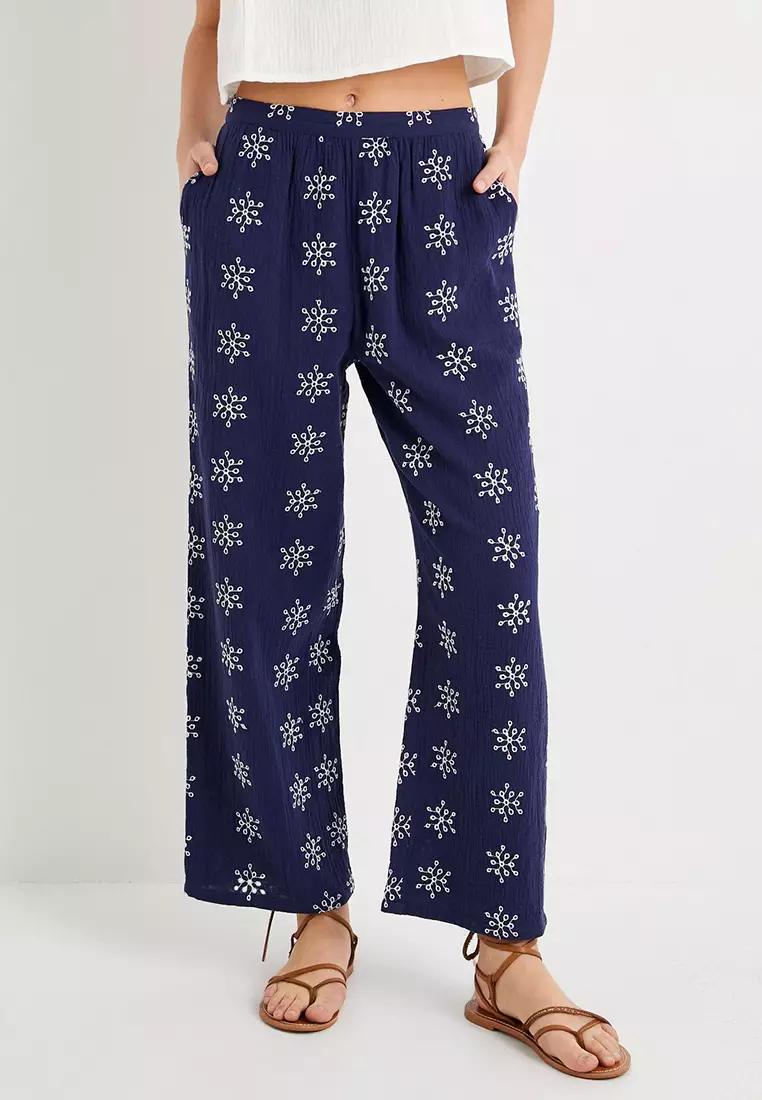 Embroidered Wide Leg Trousers