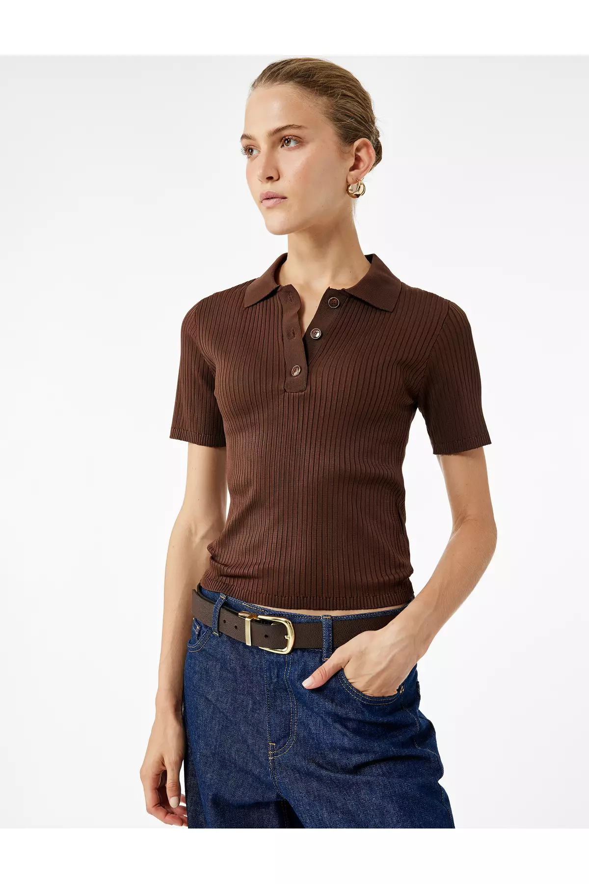 Half-Buttoned Short Sleeve Polo Neck Knitted Sweater