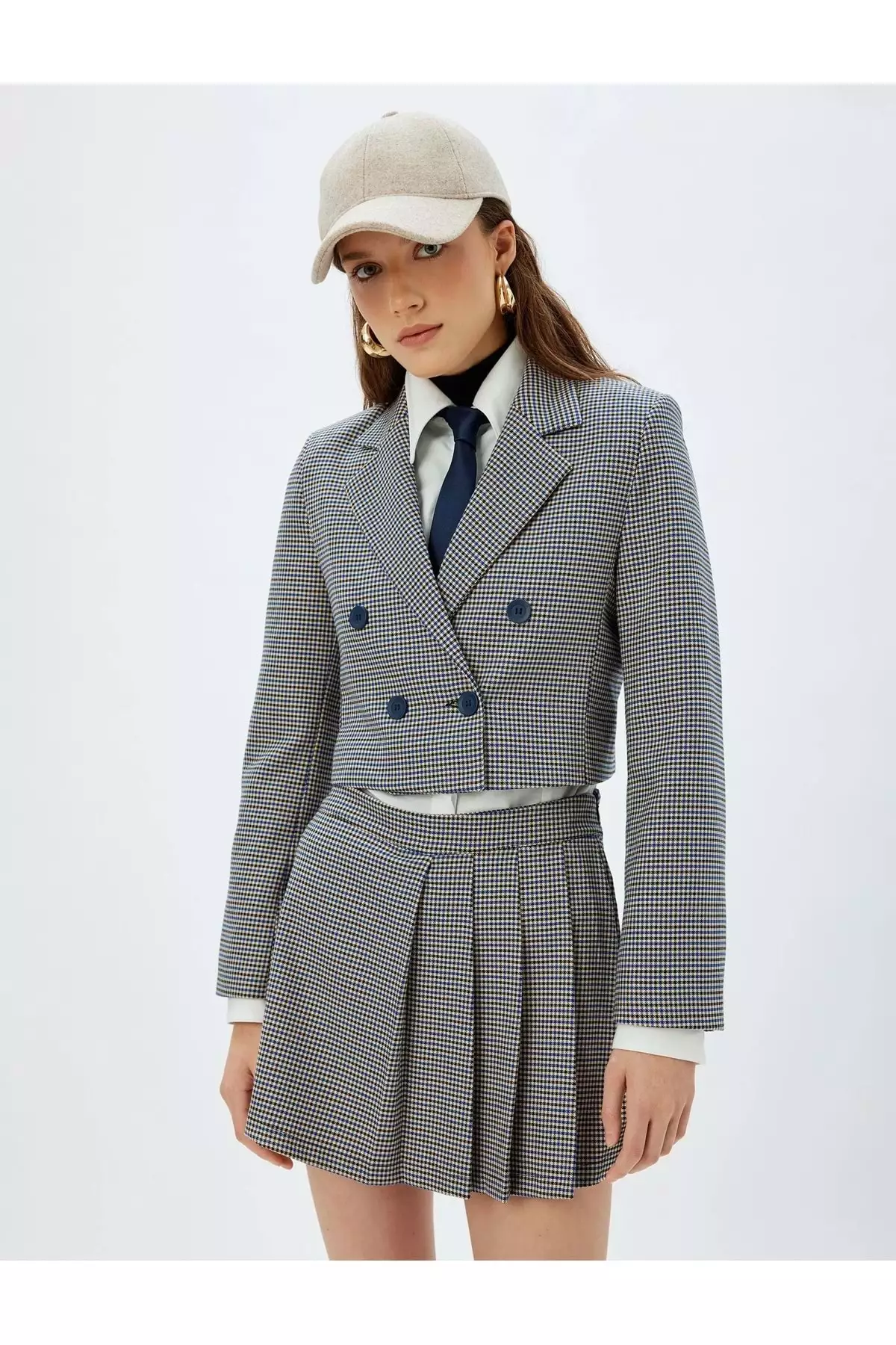 Koton X Sima Tarkan Blue Plaid Standard Waist Pleated Mini Shorts Skirt
