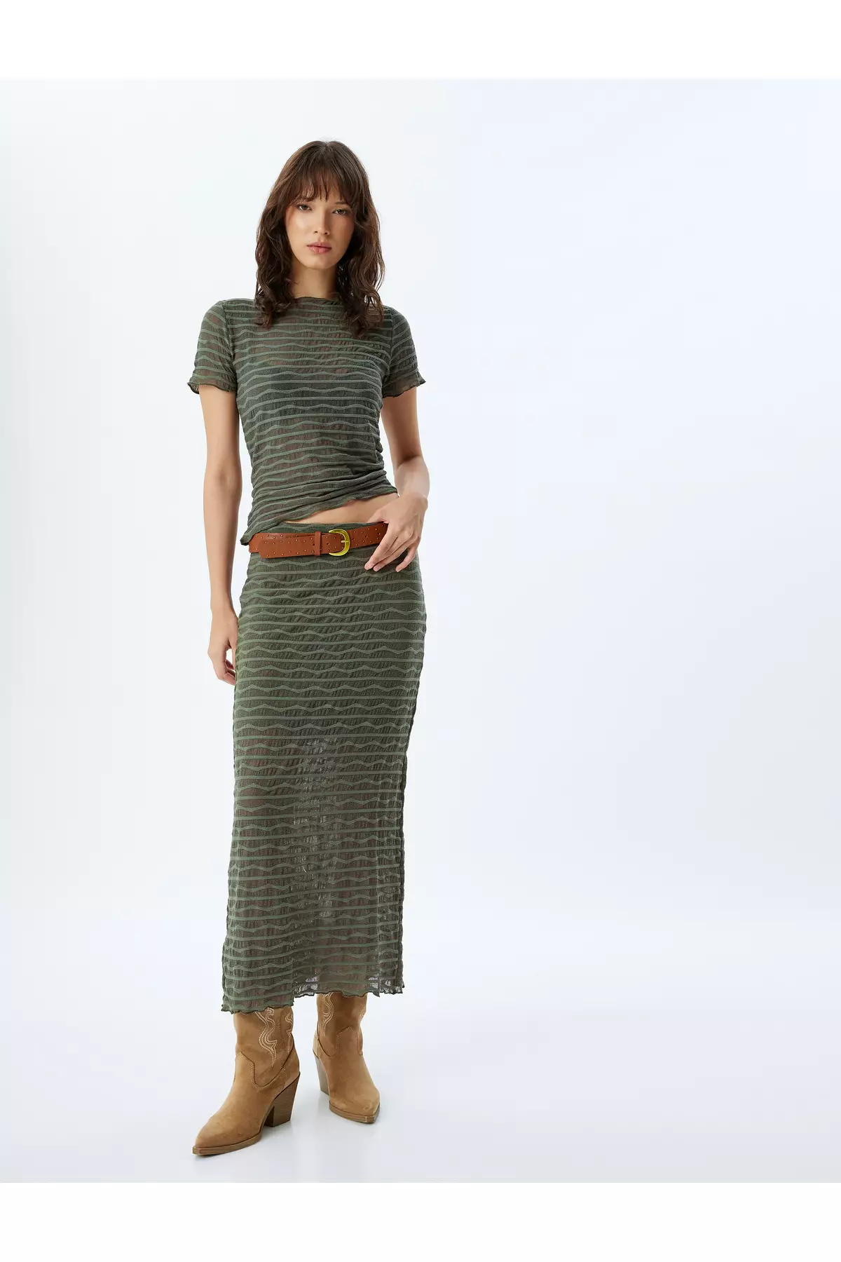 KOTONShort Sleeve Round Neck Striped Semi-Transparent Crop T-Shirt1599.00