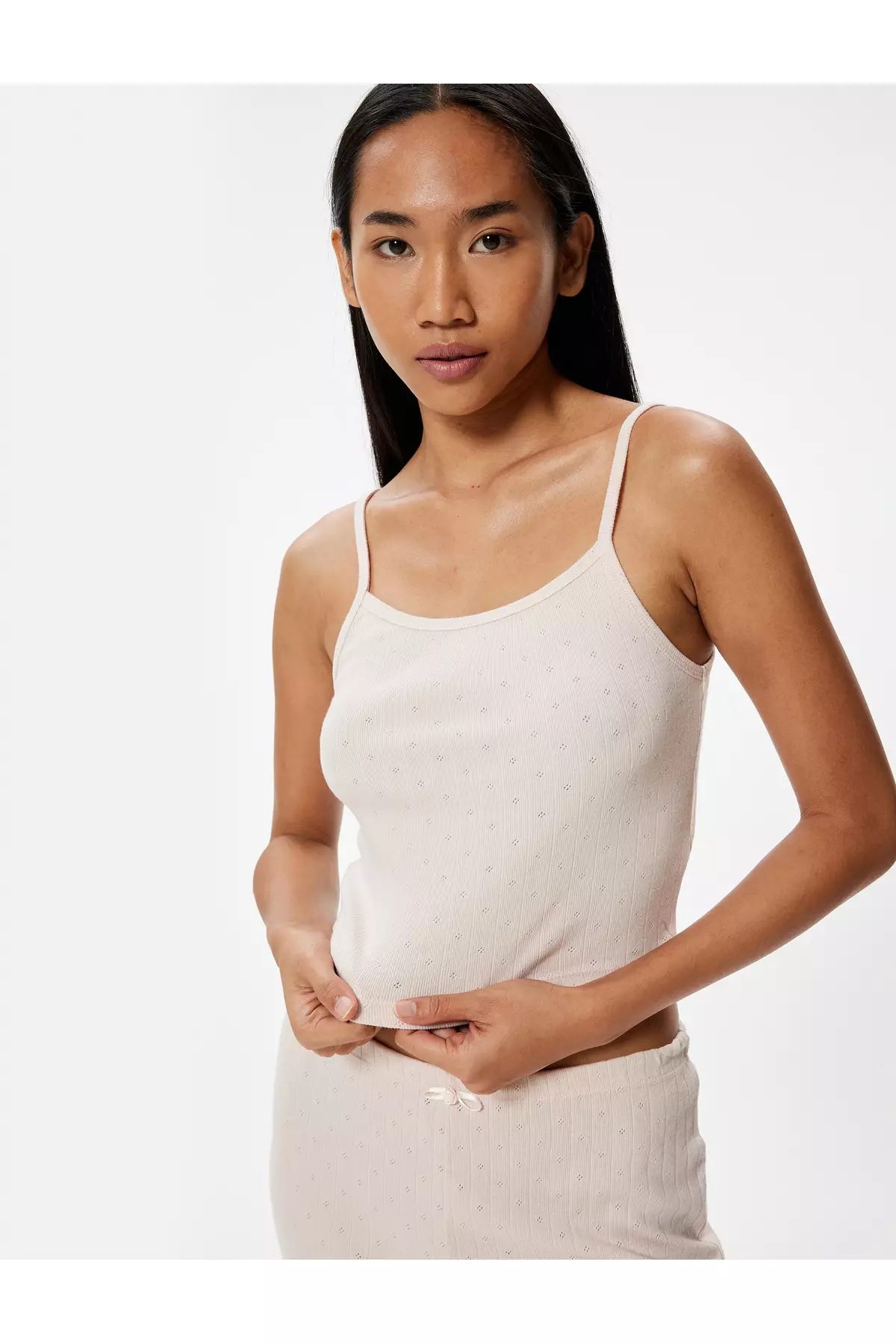 Thin Strap Pajama Top Textured Cotton