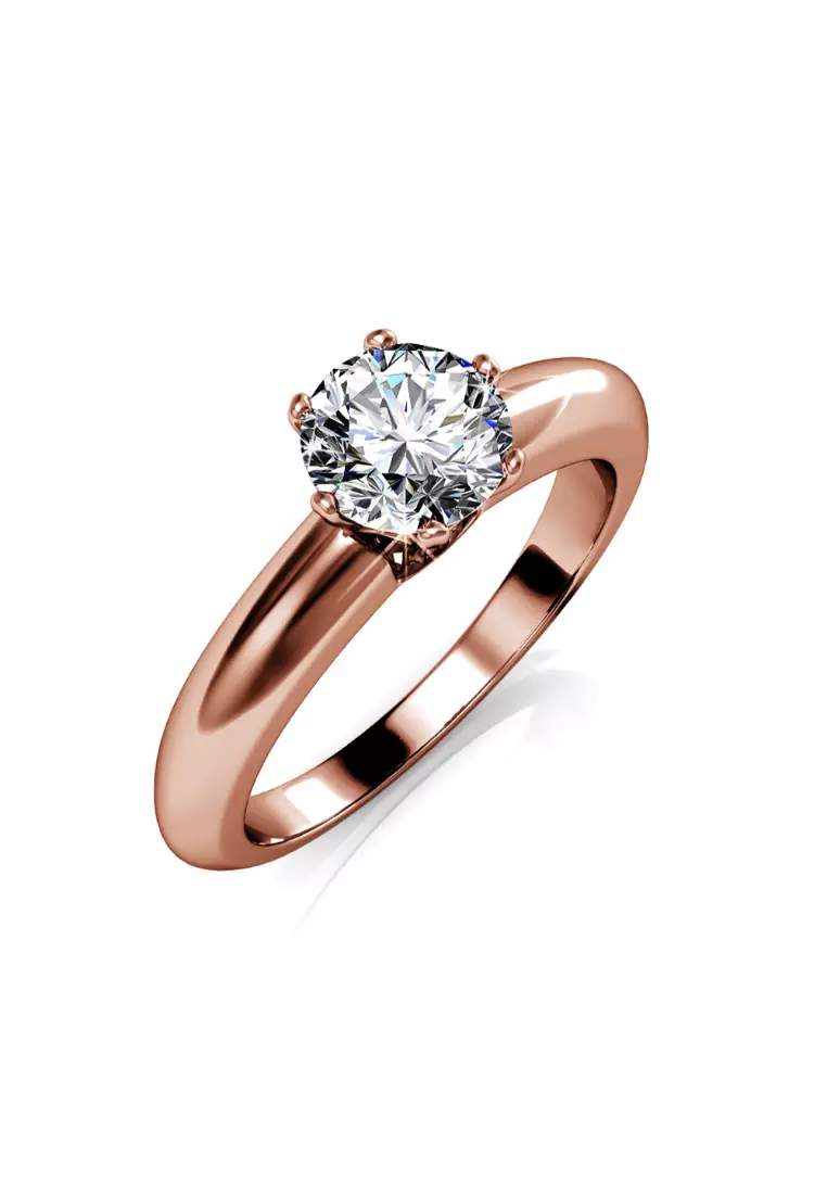 Jewel In The Palace Solitaire Ring in Rose Gold Embellished with Swarovski crystals