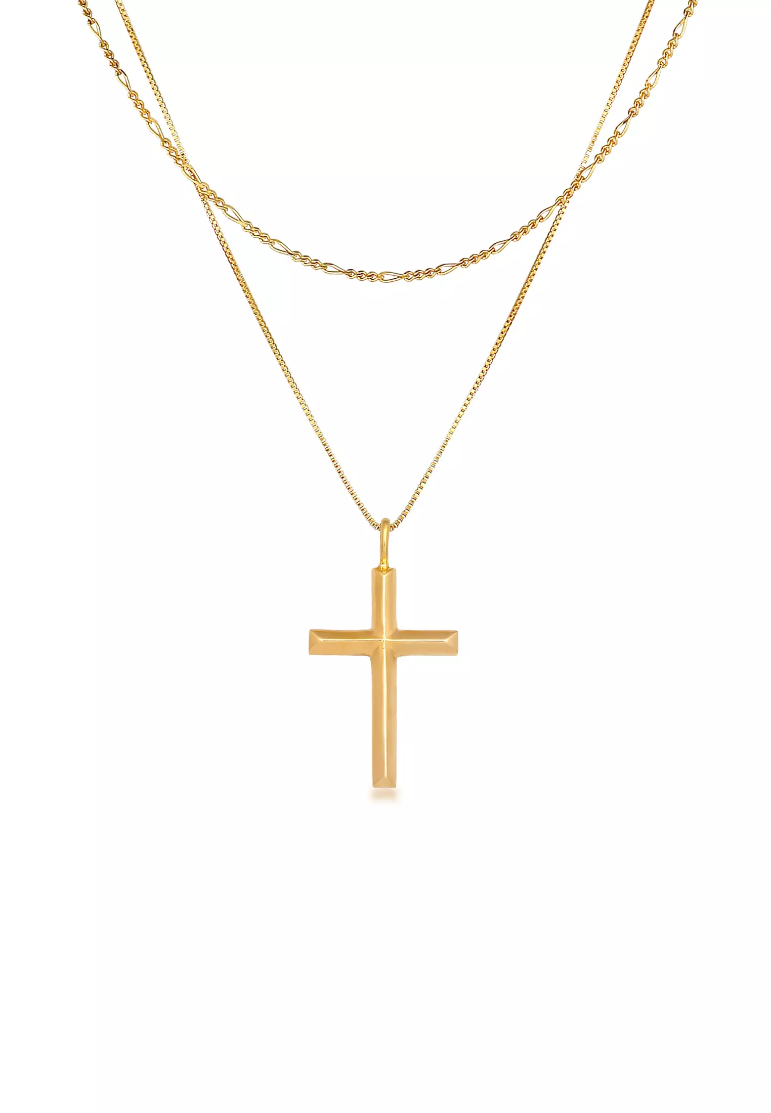 Necklace Men Cross Pendant Layer Religion Gold Plated
