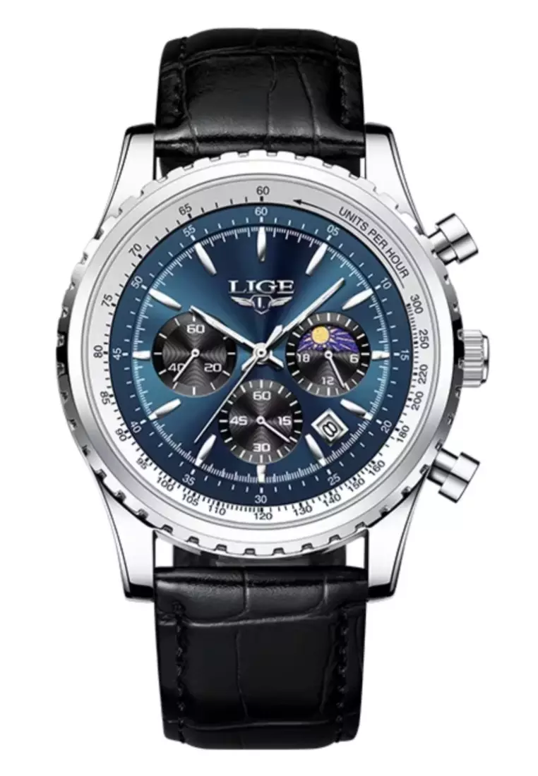 LIGE47mm Unisex Chronograph Stainless Steel Quartz Watch, Black Dial, Black Leather Strap15900.003999.00