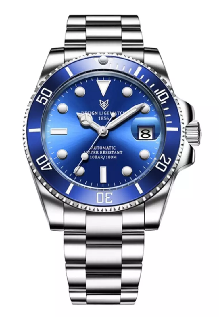LIGEAUTOMATIC Unisex Diver's Stainless Steel Self-winding Watch, Blue turning bezel, Blue dial on Steel Bracelet25000.006299.00