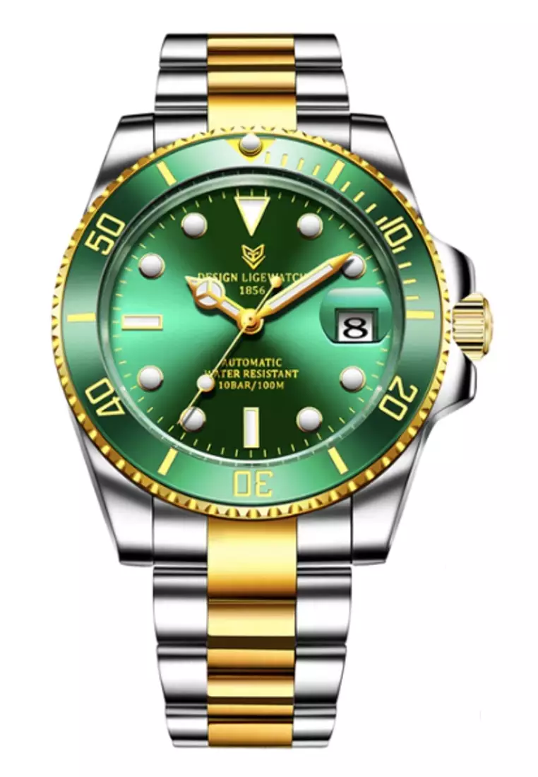 LIGEAUTOMATIC Unisex Diver's Stainless Steel Self-winding Watch, Green turning bezel, Green dial on Bicolor Steel Bracelet25000.006299.00