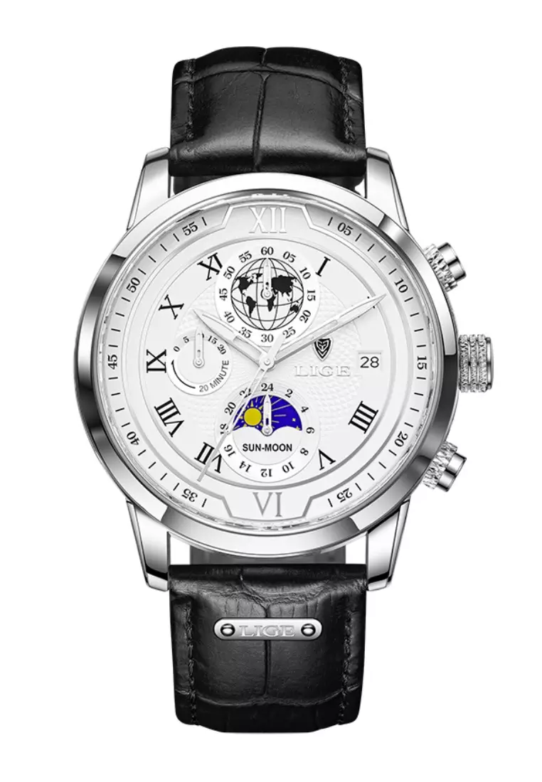 LIGEChronograph Unisex 42mm Stainless Steel Quartz Watch, White Dial on Leather Strap12500.003199.00