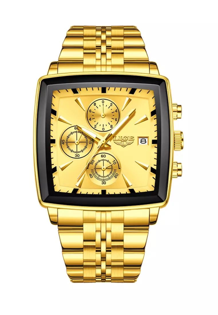 LIGEChronograph Unisex Gold Color Finish Metal Alloy Quartz Watch 40X40mm, Gold Dial, Gold Color Finish Stainless Steel Bracelet15500.003899.00