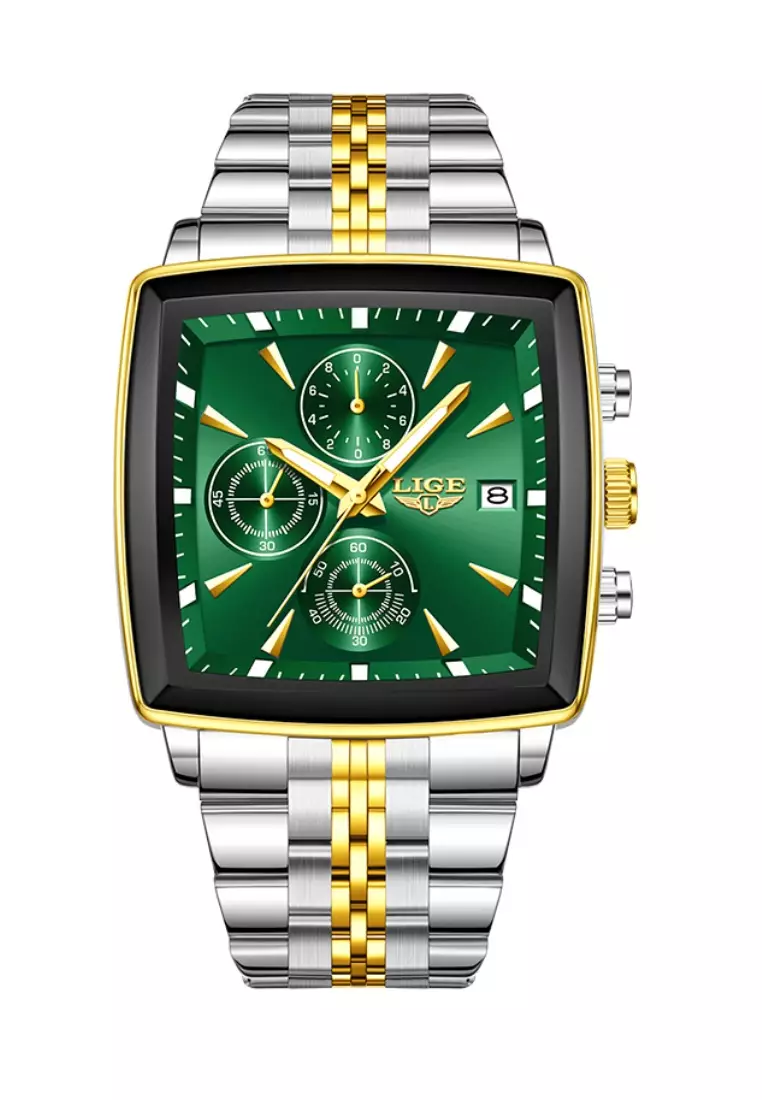 LIGEChronograph Unisex Gold color finished Stainless Steel Quartz Watch 40X40mm, Green Dial, on Bicolor Bracelet15500.003899.00