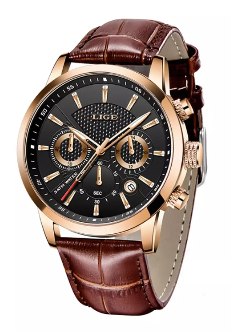LIGEChronograph Unisex Gold color finished Stainless Steel Quartz Watch 43mm, black dial, on Brown Leather Strap11200.002799.00