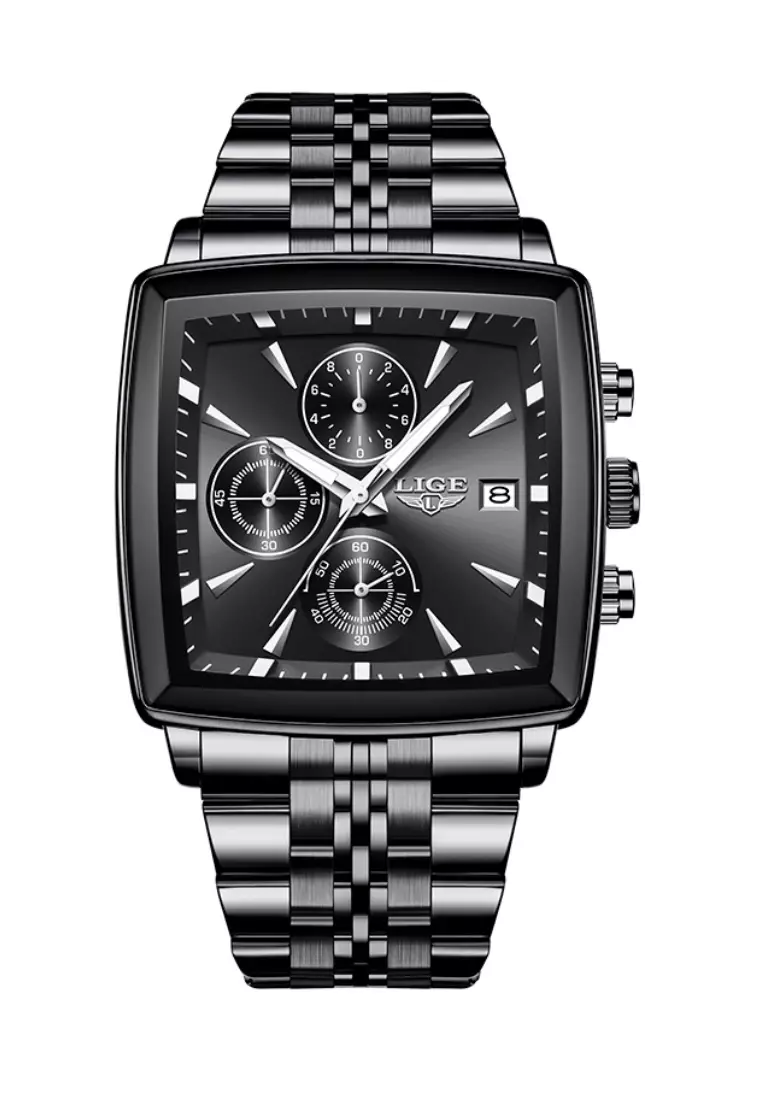 LIGEChronograph Unisex IP Black Metal Alloy Quartz Watch 40X40mm, Black Dial, IP Black Stainless Steel Bracelet15500.003899.00