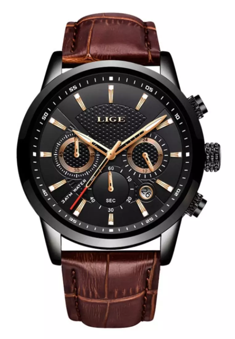 LIGEChronograph Unisex IP Black Stainless Steel Quartz Watch 43mm, black dial, on Brown Leather Strap11200.002799.00