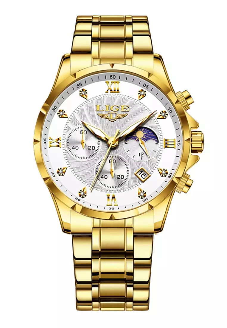 LIGEChronograph Unisex IP Gold Color Stainless Steel Quartz Watch, black dial, Metal Bracelet17100.004299.00