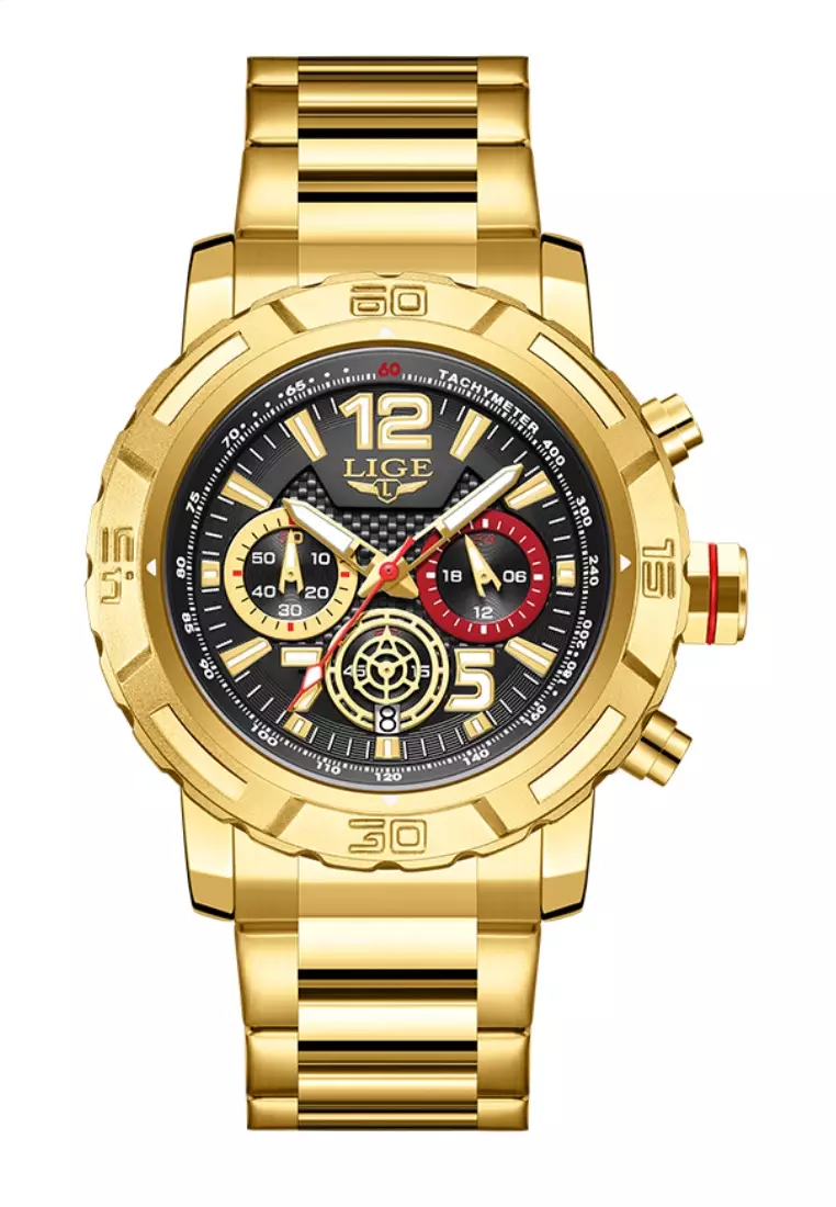 LIGEChronograph Unisex IP Gold Stainless Steel Quartz Watch, IP Black Bezel, Metal Bracelet18600.004699.00