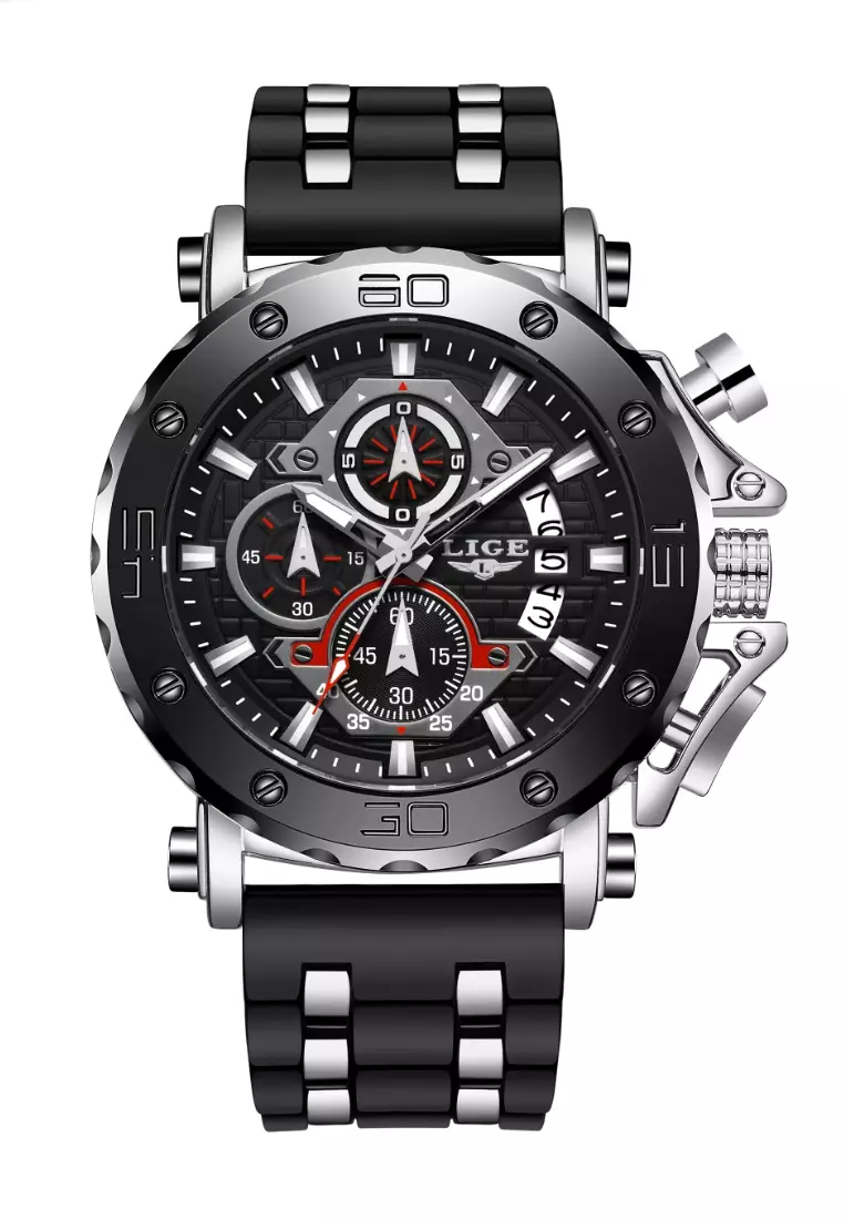 LIGEChronograph Unisex Stainless Steel Quartz Watch, Black Bezel, Black dial, Rubber and Metal Strap17200.004299.00