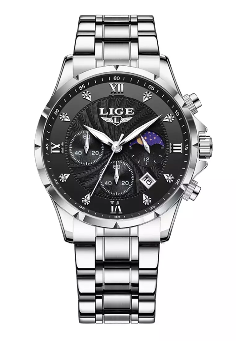 LIGEChronograph Unisex Stainless Steel Quartz Watch, black dial, on Steel Bracelet15500.003899.00
