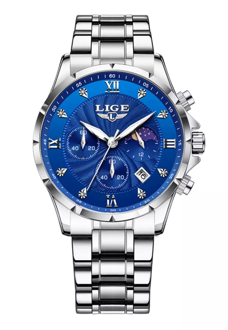 LIGEChronograph Unisex Stainless Steel Quartz Watch, Blue dial, on Steel Bracelet15500.003899.00