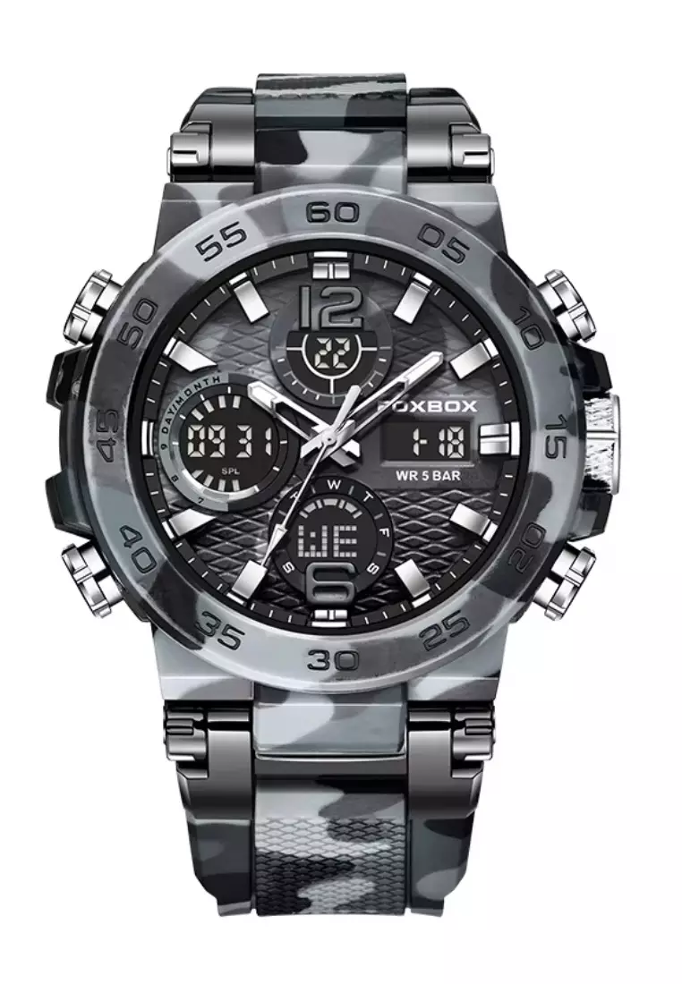 FOXBOX Military Style Chronograph, Unisex Digital/Analogue Quartz Watch, Camouflage Silicone